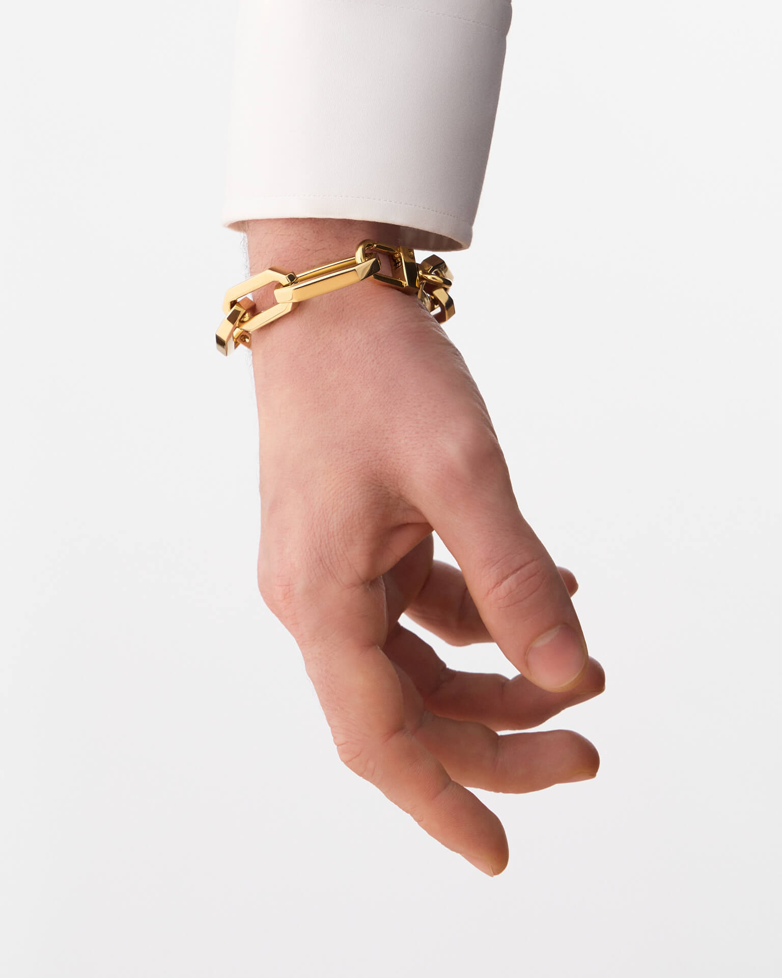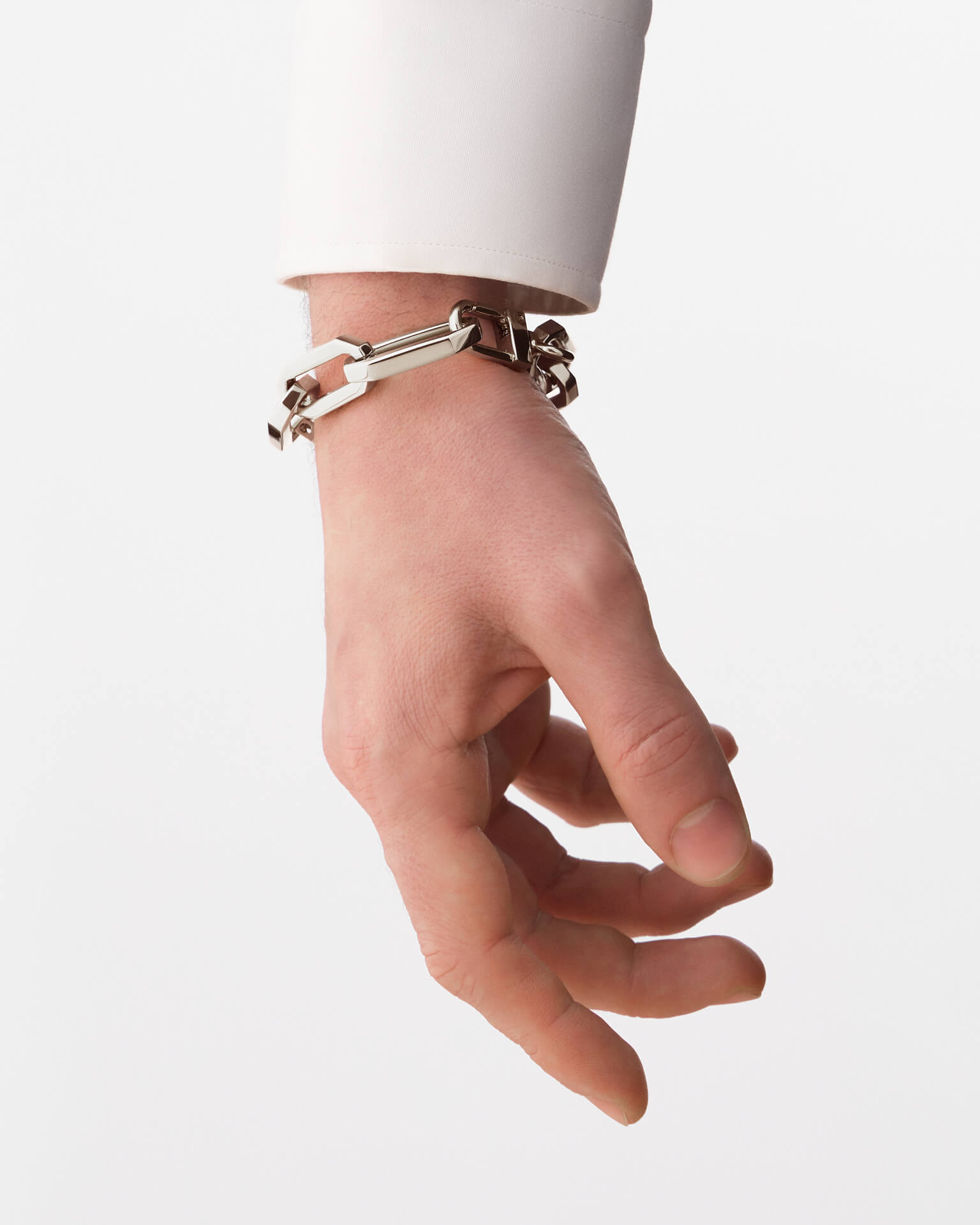 This men's bracelet is characterized by simplicity and modernity. Its structural design and strong lines reflect a bold approach to accessories. It easily fits into…