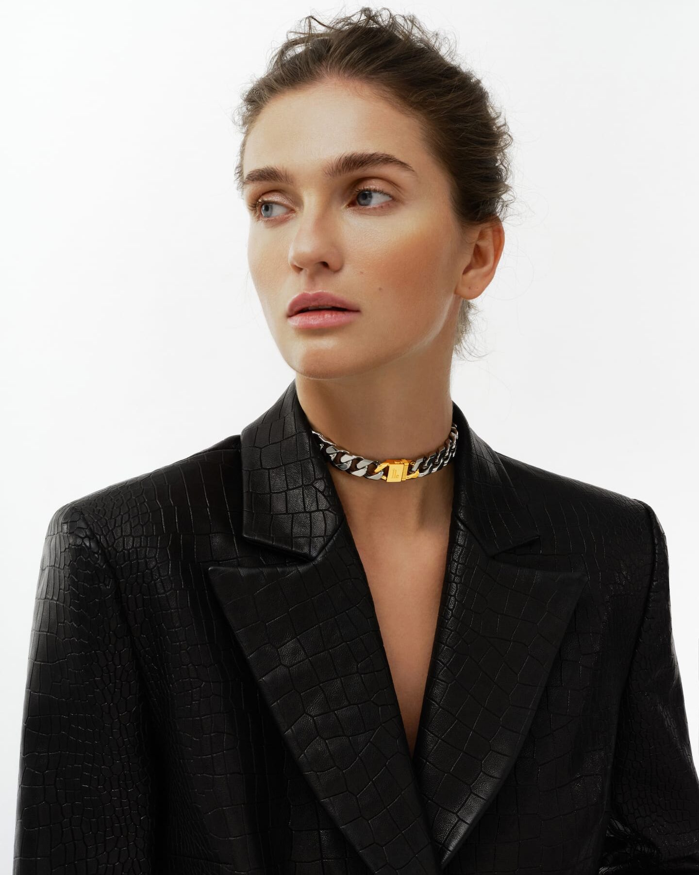 The closed contour embodies boldness and minimalism in the île necklace, and the geometric precision of each link of the choker creates a dynamic rhythm…