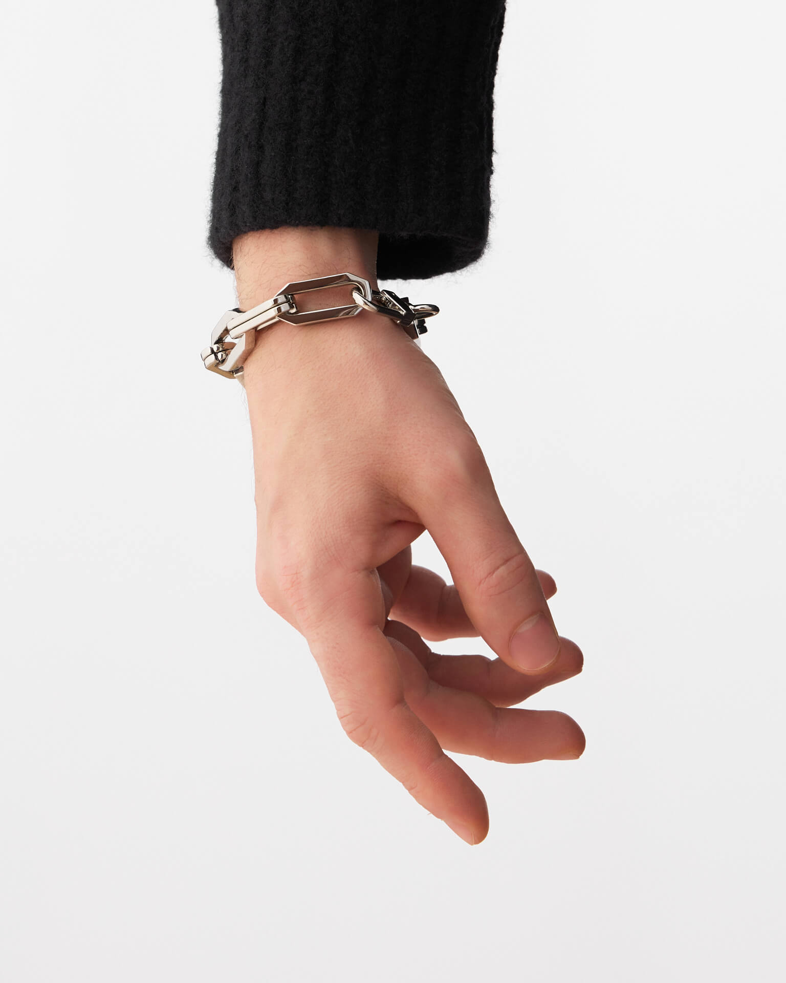 The Syncro bracelet is about the power of architecture in detail. Made in Italy, it combines the cold precision of metal with the rhythm of modern life. The double links are not just a structural element, but a code that reads the dynamics of the city, its intersections and routes.